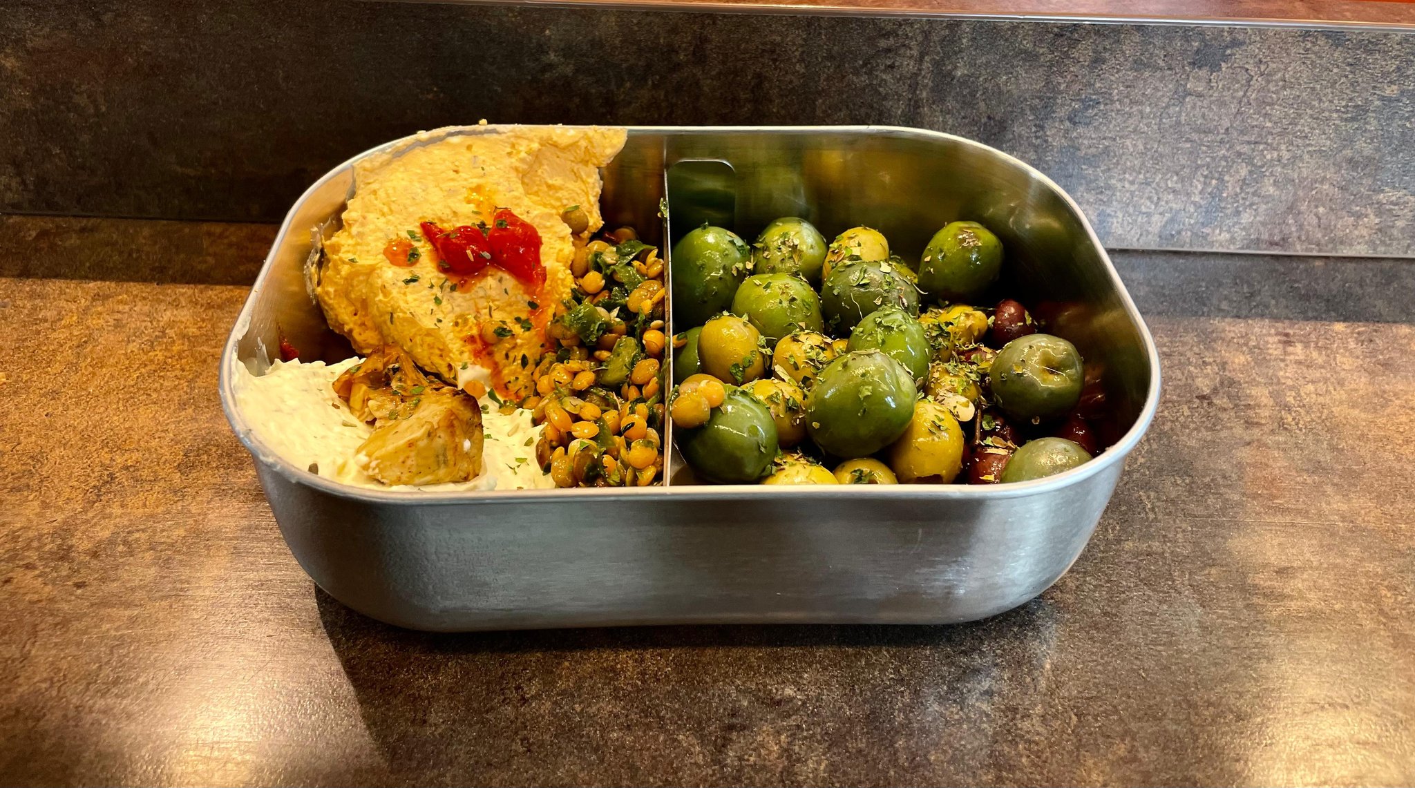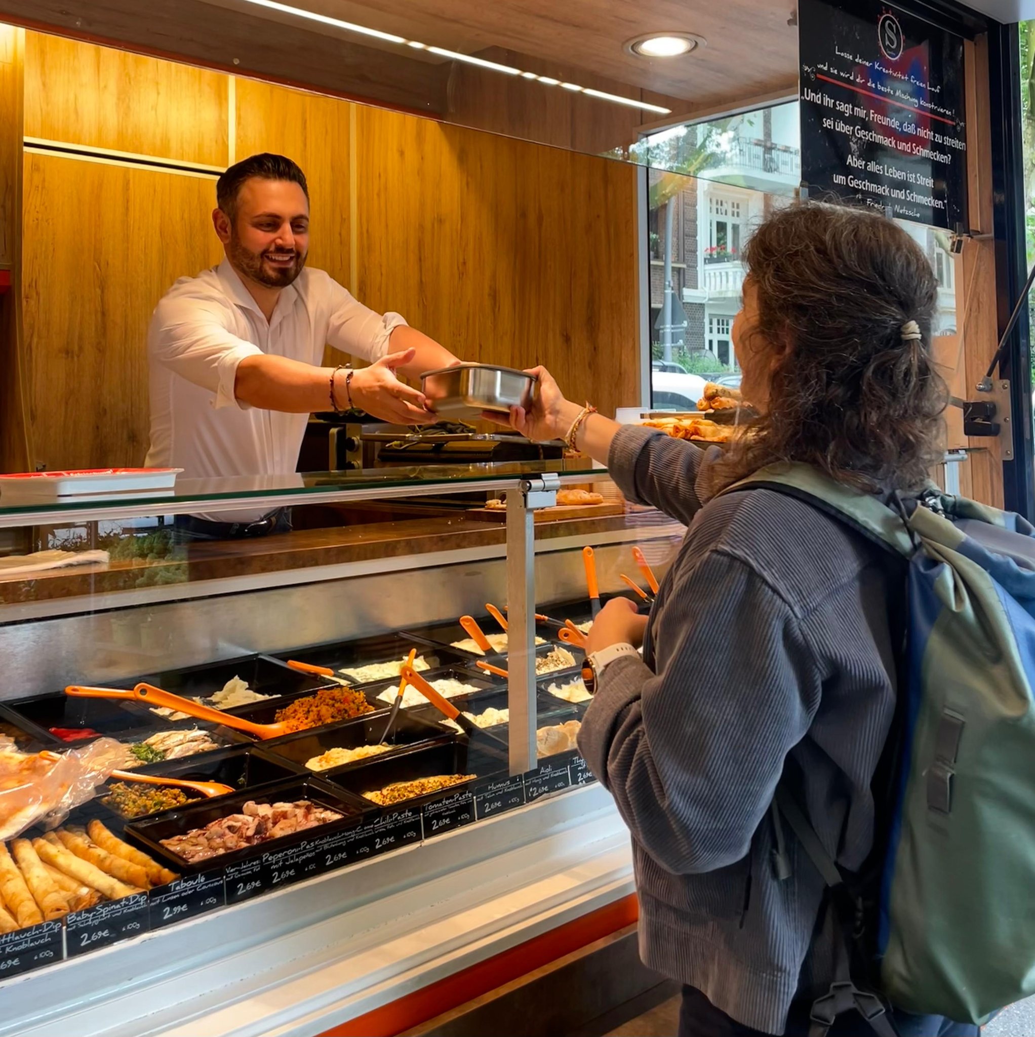 Auf dem Wochenmarkt am Goldbekufer bekommst du deine Produkte in einer Mehrwegdose aus Edelstahl. Hier berechnen wir einmalig € 8,- und, bei Rückgabe, behalten wir eine Spülgebühr von € 1,-.